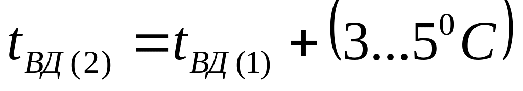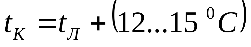 Затем определяется температура конденсации, которая обычно выше температуры воды выходящей из конденсатора на 2 … 6 0С: