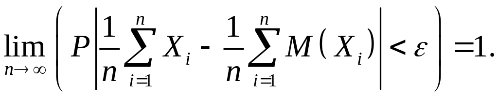 то среднее арифметическое наблюденных значений случайных величин сходится по вероятности к среднему арифметическому их математических ожиданий: