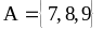 и прочитать как : “А - множество, содержащее 7, 8, 9”.