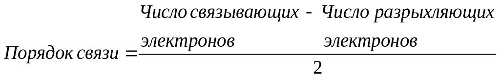 Обобществленные электроны распределяют по молекулярным орбиталям согласно принципу наименьшей энергии и принципу Паули. По характеру распределения электронов по орбиталям оценивают порядок связи как разность числа связывающих и разрыхляющих электронов: