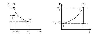 Определить температуру, давление, удельный объем в конце адиабатного расширения и суммарную работу процессов, если температуры рабочего тела в точках один и три равны. Представить процессы в vр- и sT-диаграммах.