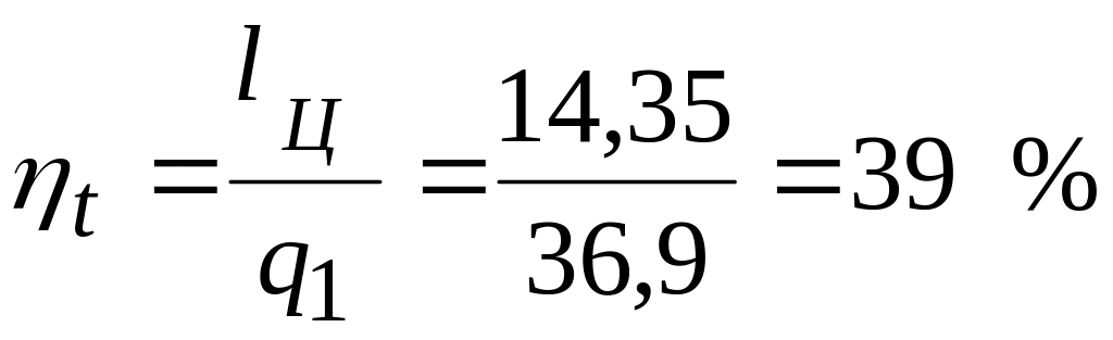 3. Определить суммарные количества подведенной q1 и отведенной q2 теплоты, работу цикла ц, термический КПД цикла t.