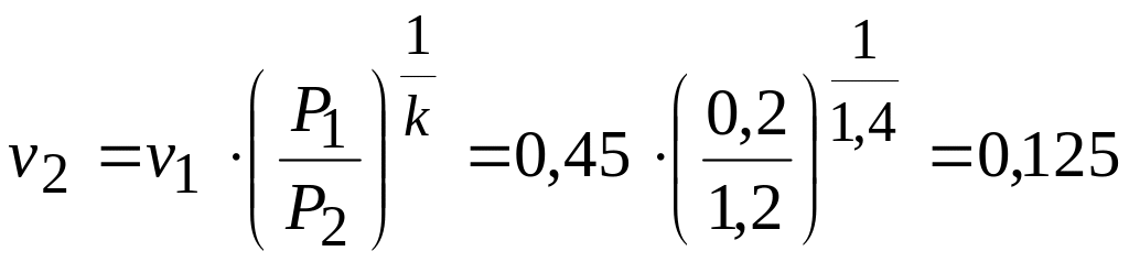 Задача 2.2.2 Воздух массой m = 1,9 кг с начальным давлением p1 =0,22 МПа адиабатно расширяется. При этом его температура изменяется от t1 =65 оС до t2 =21оС. Определить параметры состояния рабочего тела в точках 1 и 2, а также теплоту, энтальпию и изменение внутреней энергии 1 кг азота в процессе. Принять ср = 1,0121 кДж/кг∙К, =287 кДж/кг∙К.