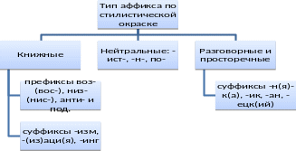 б) морфемы, обладающие той или иной эмоционально-оценочной стилистической окраской (высокой, сниженной, пренебрежительной и др.)
