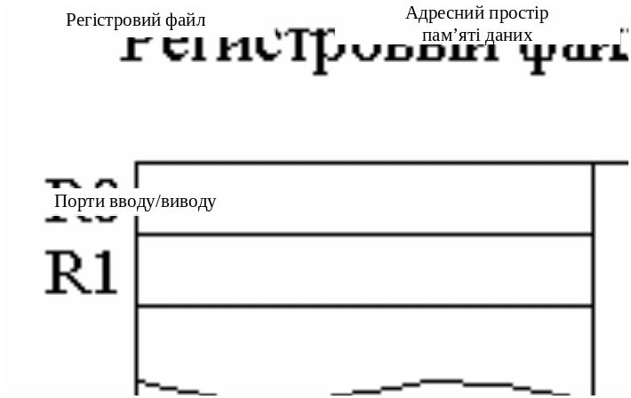 Рисунок 1.2 - Ілюстрація відображення регістрів загального призначення й портів уведення/виводу на адресний простір пам'яті даних