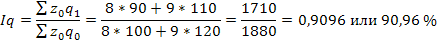 Индекс объема продукции показывает, как в среднем изменилось количество произведенной продукции в отчетном периоде по сравнению с прошлым периодом.