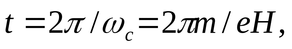 Анализ движения заряженной частицы из состояния покоя под действием ВЧ-поля, направленного перпендикулярно постоянному магнитному полю, показывает, что частица будет описывать спиральную траекторию, радиус которой зависит от времени следующим образом (1.5):