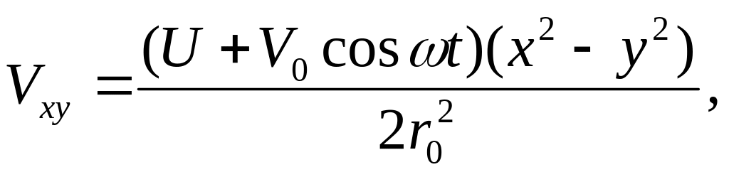 Решения этих уравнений по осям х и у независимы. Вообще говоря, траектории ионов в соответствии с этими решениями имеют колебательный характер с возрастающей по времени амплитудой. Однако, на практике, когда электрические параметры масс-спектрометра лежат внутри определенных диапазонов, амплитуда колебаний ограничена по обеим осям х и у, и, следовательно, ион будет совершать устойчивые колебания внутри системы электродов.