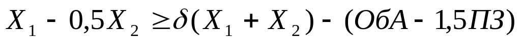 Виходить, що сума фінансування за рахунок усіх джерел (Х) не повинна бути меншою від суми позикових і власних засобів на технічний розвиток за мінусом (ОбА-1,5 ПЗ). З урахуванням умови ефективності