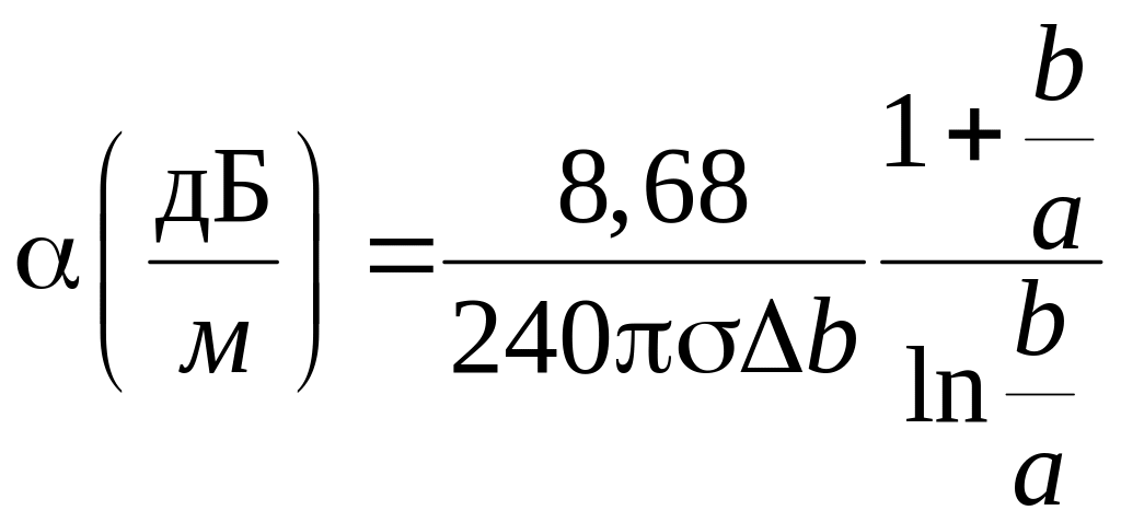 Коэффициент затухания электромагнитного поля в коаксиальной линии, вызванный конечной проводимостью металла, определяется соотношением