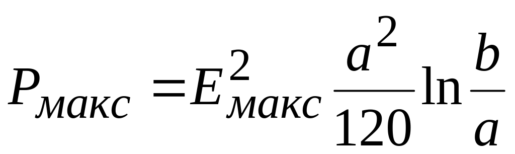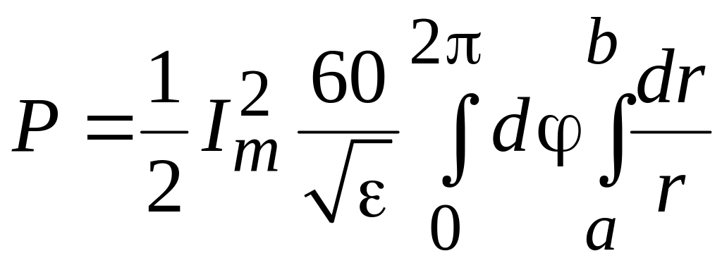 Мощность, передаваемую по коаксиальной линии, найдем интегрированием комплексного вектора Пойнтинга по поперечному сечению