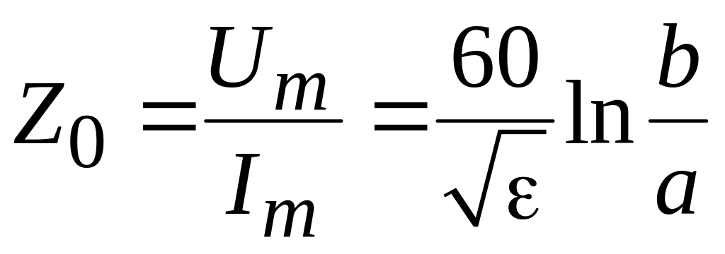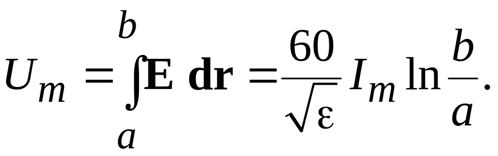 В силу потенциального характера поля в ТЕМ волне амплитуду напряжения между проводниками коаксиальной линии можно найти интегрированием напряженности поля (1.12) по радиусу