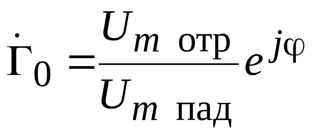 Коэффициент отражения в сечении неоднородности является величиной комплексной: его модуль равен отношению амплитуд напряжения отраженной и падающей волн, а фаза, равна фазе отраженной волны.