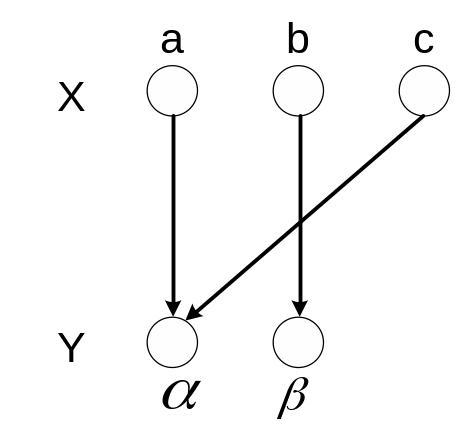 Пример 5.1. Г = < {< a, >, < b, >, < c, >}, X = {a, b, c}, Y = {, } >. На рис. 5.2 представлено графическое задание этого соответствия.