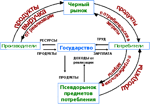 Хозяйственный механизм административно-командной системы имеет ряд особенностей. Он предполагает, во-первых, непосредственное управление всеми предприятиями из единого центра — высших эшелонов государственной власти, что сводит на нет самостоятельность хозяйствующих субъектов. Причем это управление базируется на государственном плане, который имеет обязательный (директивный) характер для всех предприятий и отраслей. Во-вторых, государство полностью контролирует не только производство, но и распределение продукции, в результате чего исключаются свободные рыночные взаимосвязи между отдельными предприятиями. В-третьих, государство проводит политику очень невысокой дифференциации в оплате труда, что подрывает материальную заинтересованность в его результатах.