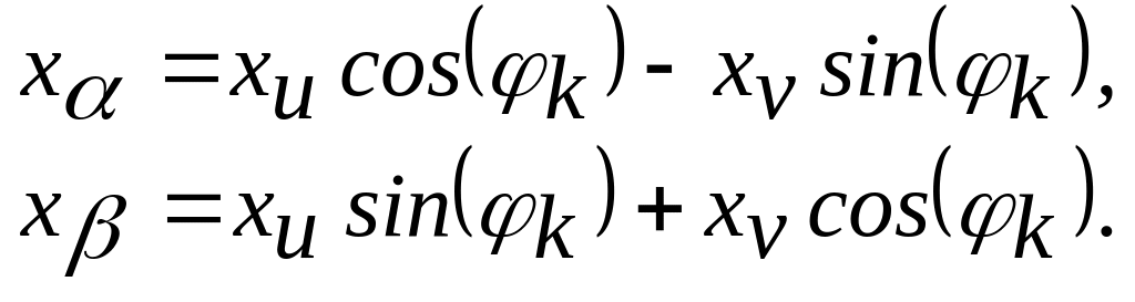 (u-v) – система координат, вращающаяся с произвольной частотой ωk.