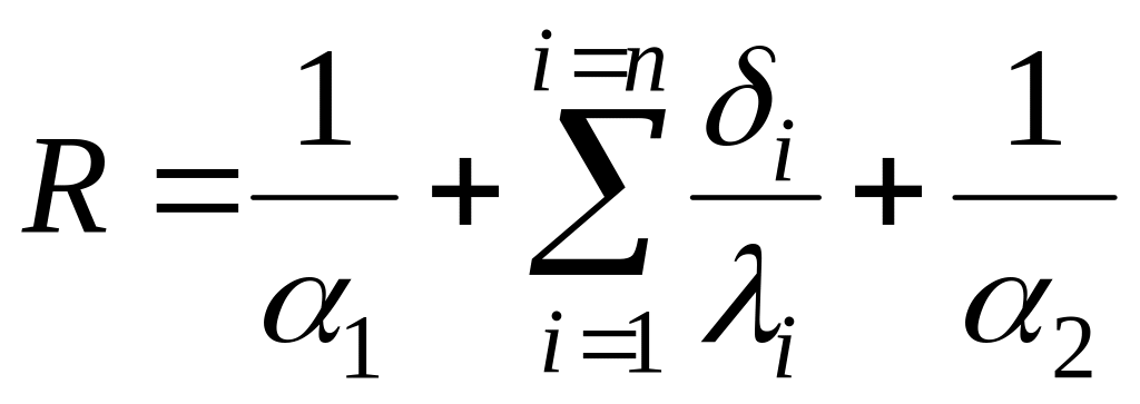 Для многослойной стенки нужно учитывать термическое сопротивление каждого слоя. Если стенка состоит из n слоев, то полное термическое сопротивление теплопередачи через такую стенку будет равно: