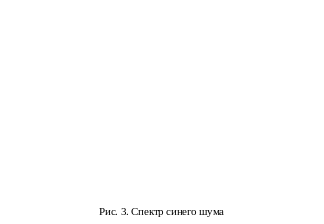 Синий (голубой) шум. Синий шум – это вид шумового сигнала, у которого спектральная плотность мощности с ростом частоты увеличивается на 3 дБ на октаву (рис. 3). Спектр синего шума представляет собой зеркальное отражение спектра розового шума. Поскольку мощность его на высоких частотах увеличивается, то на слух он воспринимается как более резкий в сравнении с белым. Синий шум может быть получен путем дифференцирования розового шума.