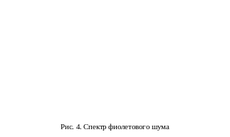 Фиолетовый шум. Фиолетовый шум – это усиленный вариант синего шума - спектральная плотность мощности его пропорциональная квадрату частоты и с ее ростом увеличивается на 6 дБ на октаву (рис. 4). Спектр фиолетового шума представляет собой зеркальное отражение спектра красного шума.