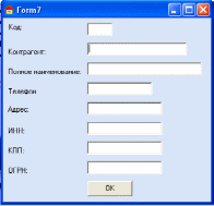 Вид формы для отображения справочника Контрагенты представлен на рисунке 13.