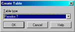 Рисунок 8. Выпадающий список в диалоговом окне Table Type позволяет выбрать тип создаваемой таблицы