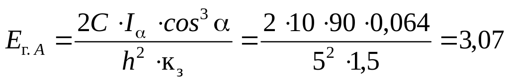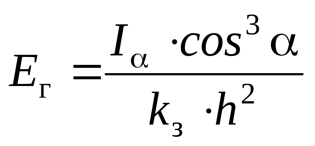 где I – сила света луча прожектора, направленного под углом , кд; h – высота установки прожектора, м; kз – коэффициент запаса; – угол, образуемый оптической осью пучка лучей прожектора и вертикалью к освещаемой площади.