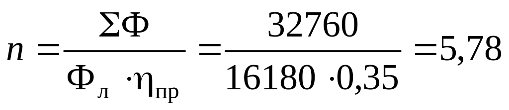 Принимаем n = 6, где пр = 0,35 – к.п.д. прожектора по технической характеристике.