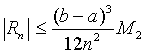 где М2 – максимум модуля второй производной подинтегральной функции на отрезке [a,b], т.е.