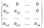 Треугольной матрицей называется квадратная матрица, все элементы которой, расположенные по одну сторону от главной диагонали, равны нулю. Различают соответственно верхнюю и нижнюю треугольную матрицы: