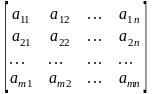 Матрицей называется система m×n чисел, расположенных в прямоугольной таблице из m строк и n столбцов. Числа этой таблицы называются элементами матрицы. Обозначение матрицы: