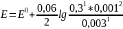 Для преподов, студентам не читать, заметим, что вообще-то RT/F не равно 0,06. Ну ёбанный стыд, как так можно косячить. R=8.31 Дж/моль*К, T=298 К (не обязательно, но имелось в виду это), F=96500 Кл/моль. Если это всё посчитать, то получится примерно 0,026. Однако, в формуле надо действительно 0,06, дело в том, что там не просто RT/F, а 2,3RT/F, а это самое 2,3 — коэффициент перевода из натурального в десятичный логарифм. Впрочем, это редкостное занудство, а всем, как обычно, похуй.