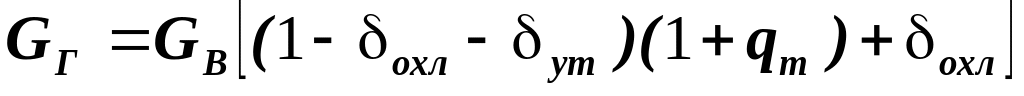 Относительный расход топлива за турбиной определим о формуле: