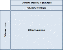 Каждая сводная таблица состоит из 4 областей: страница, строка, столбец, данные.