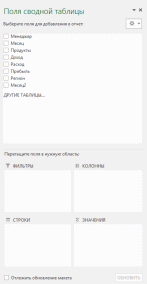 Далее необходимо выбрать поля для отображения в сводной таблице.