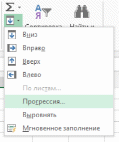Для создания прогрессии необходимо ввести начальное значение, и в меню прогрессии указать расположение, тип прогрессии, предельное значение и шаг.
