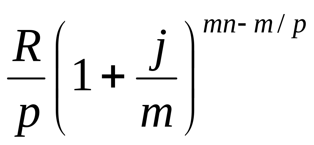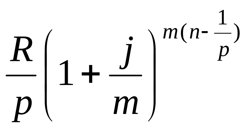 Последний член этой записанной в обратном порядке геометрической прогрессии равен R/p, ее знаменатель (1+j/m)m/p, число членов пт.