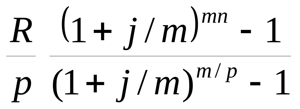 Рента р - срочная, с произвольным поступлением платежей p ≥ 1, и произвольным начислением процентов m ≥ 1 (общий случай). Это самый общий случай р-срочной ренты с начислением процентов т раз в году, причем, возможно, р ≠ т.