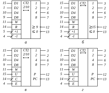 Рис. 4.41. Счетчики: а) К155ИЕ5, б) К155ИЕ2