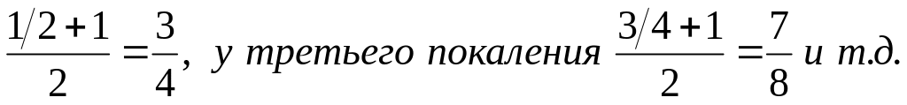 При поглотительном скрещивании у помесей разных поколений происходит увеличение доли крови улучшающей породы: F1-1/2; F2-3/4; F3-7/8; F4 – 15/16; F5 – 31/32. Кровность животных улучшающей породы принимается за единицу. Помеси I поколения - полукровные, расчет кровноcти у помесей II поколения следующий: