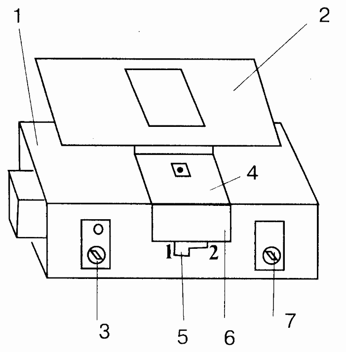 В кюветном отделении (4) в кюветодержателе, устанавливаемом на подвижный столик, располагают кюветы. Кюветодержатель устанавливают так, чтобы две маленькие пружины находились со стороны источника света. Ввод в световой пучок той или иной кюветы осуществляют перемещением ручки (5) влево или вправо до упора (положение «1» или «2»). В положении «1» в световой пучок вводится кювета с растворителем, в положении «2» - с исследуемым раствором.
