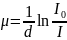 где d - толщина слоя вещества, I0 - интенсивность падающего на образец рентгеновского пучка, I – интенсивность ослабленного пучка, 𝝁 – коэффициент линейного ослабления материала.