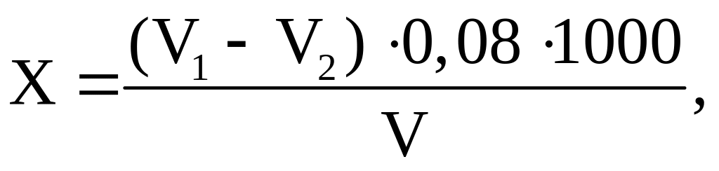 0,08 – количество кислорода, эквивалентное 1мл точно 0,01 н. раствора KMnO4;