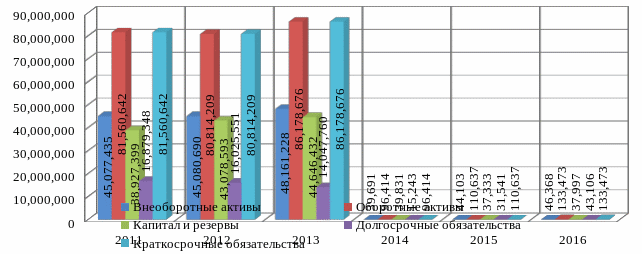 Вывод:В 2012 году наибольший вес в структуре оборотных активов имеют запасы –16619011, денежные средства –4214719, дебиторская задолженость –14262522, прочие оборотные активы –637267. В 2012 году по сравнению с 2011 прослеживается увеличение денежных средств, прочих оборотных активов, уменьшение дебиторской задолженности.