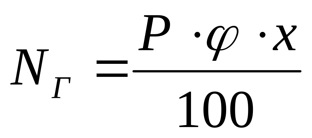 де: NГ – кількість споживачів, що обслуговуються за 1 розрахункову годину в залі підприємства, чол..;