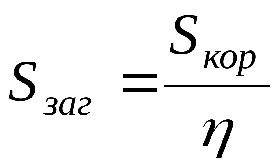Sкор - корисна площа цеху (площа, що займає обладнання), м2;