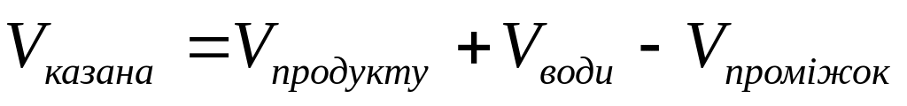 Розрахунок об’єму казанів для приготування бульйонів ведеться на весь день реалізації по формулі: