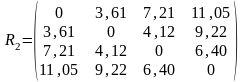 Как и в предыдущем расчете, мы используем обычное евклидово расстояние, поэтому матрица R1 останется без изменения. Согласно алгоритму объединим цеха 4 и 5 в один кластер, как наиболее близкие по расстоянию 2,24. После объединения имеем четыре кластера S(1), S(2), S(3) и S(4,5).