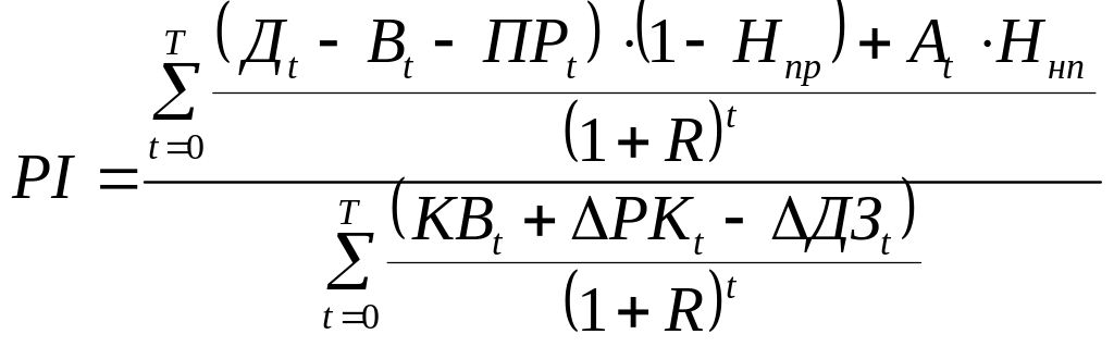 В загальному випадку цей показник визначається як перевищення загальних результатів, приведених до поточного моменту часу, над поточною вартість витрат, повязаних з формуванням результатів. Показник визначається за формулою:
