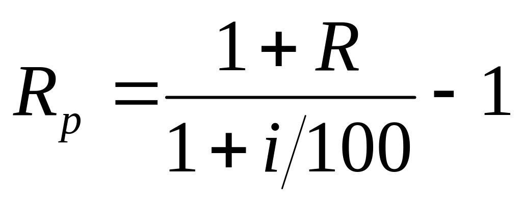 При використанні базових цін дисконтування виконується за реальною, відчищеною від інфляції нормі доходу, що визначається формулою: