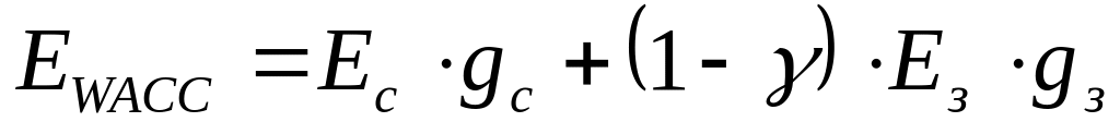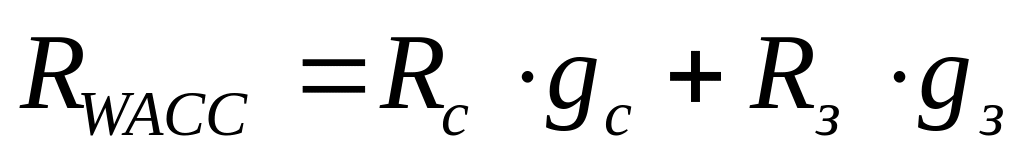 Середньозважена вартість капіталу (Weighted Average Cost of Capital WACC). У найбільш простому випадку, коли у структурі капіталу є тільки власні і позикові кошти, розрахункова формула для норми дисконту має вигляд: